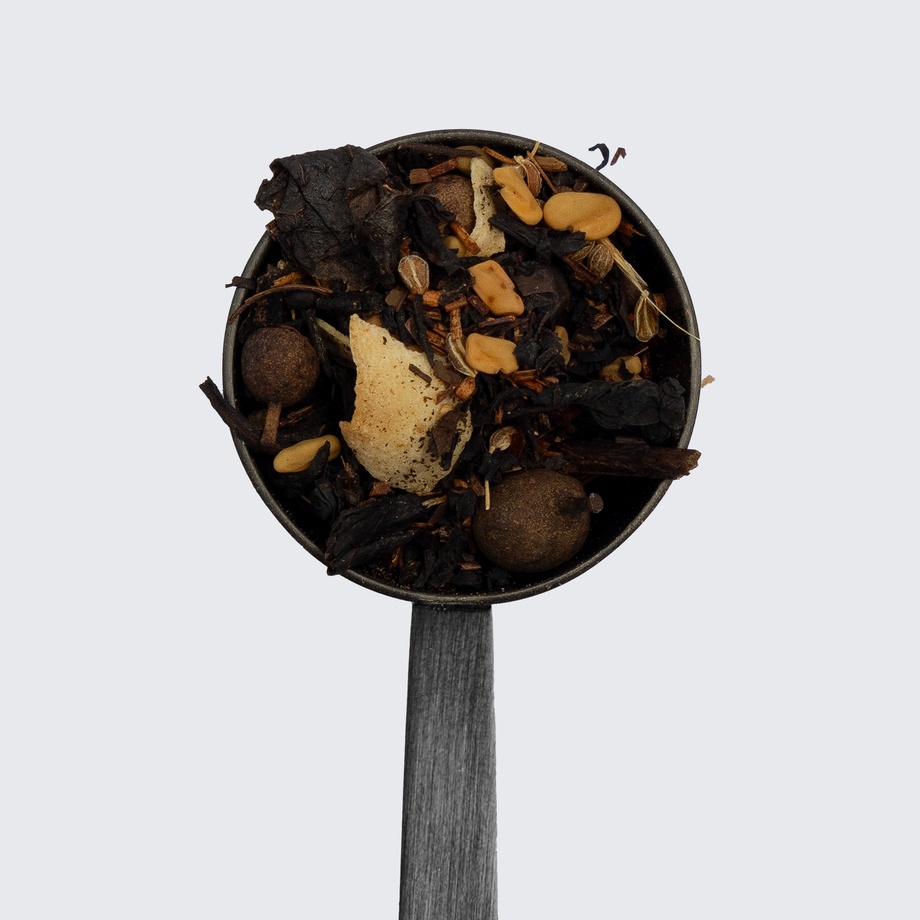 Black tea, roasted mate, rooibos, coconut chips, anise seeds, coconut chai extract, maca, black pepper, cinnamon, chaga, fenugreek, allspice.